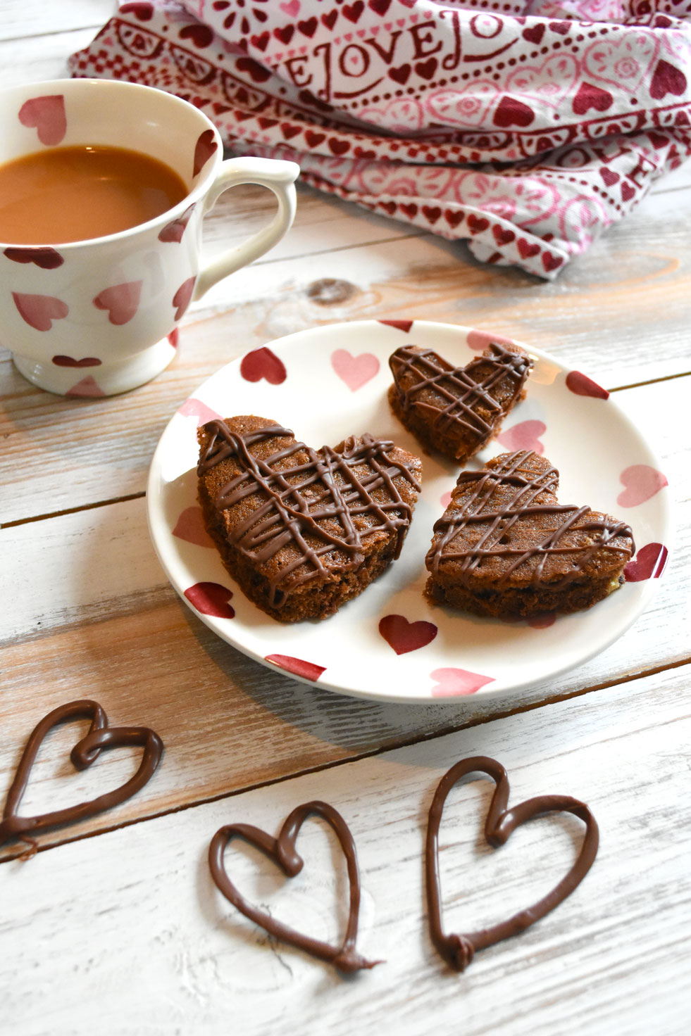 - Melt some of your favourite chocolate, dark, milk or white would work. Take a piping bag with a teeny nozzle or sandwich bag with a teeny bit of the corner cut off and place the melted chocolate inside. Drizzle it over your cake hearts. I had plenty of melted chocolate left over so I made some chocolate hearts on baking paper to use as decorations.
