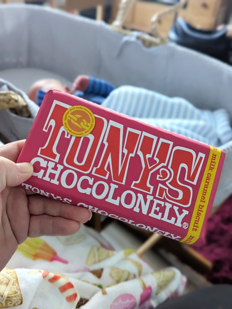 Have a snack basket at the ready for when you’re feeling peckish. I had a home birth with my third baby and we’d prepared a snack basket for the midwives. They hadn’t eaten anything from it so we had a basket full of goodies for ourselves that we wouldn’t have had prepared otherwise. It meant we had a good stash ready for when we fancied a little treat. I became rather partial to a bar of Tony’s Chocolonely every now and again! I also have what I call an emergency snack pack for the toddler in my changing bag for when we are out and about. Being totally honest, I’ve made use of said emergency snacks a few times too.