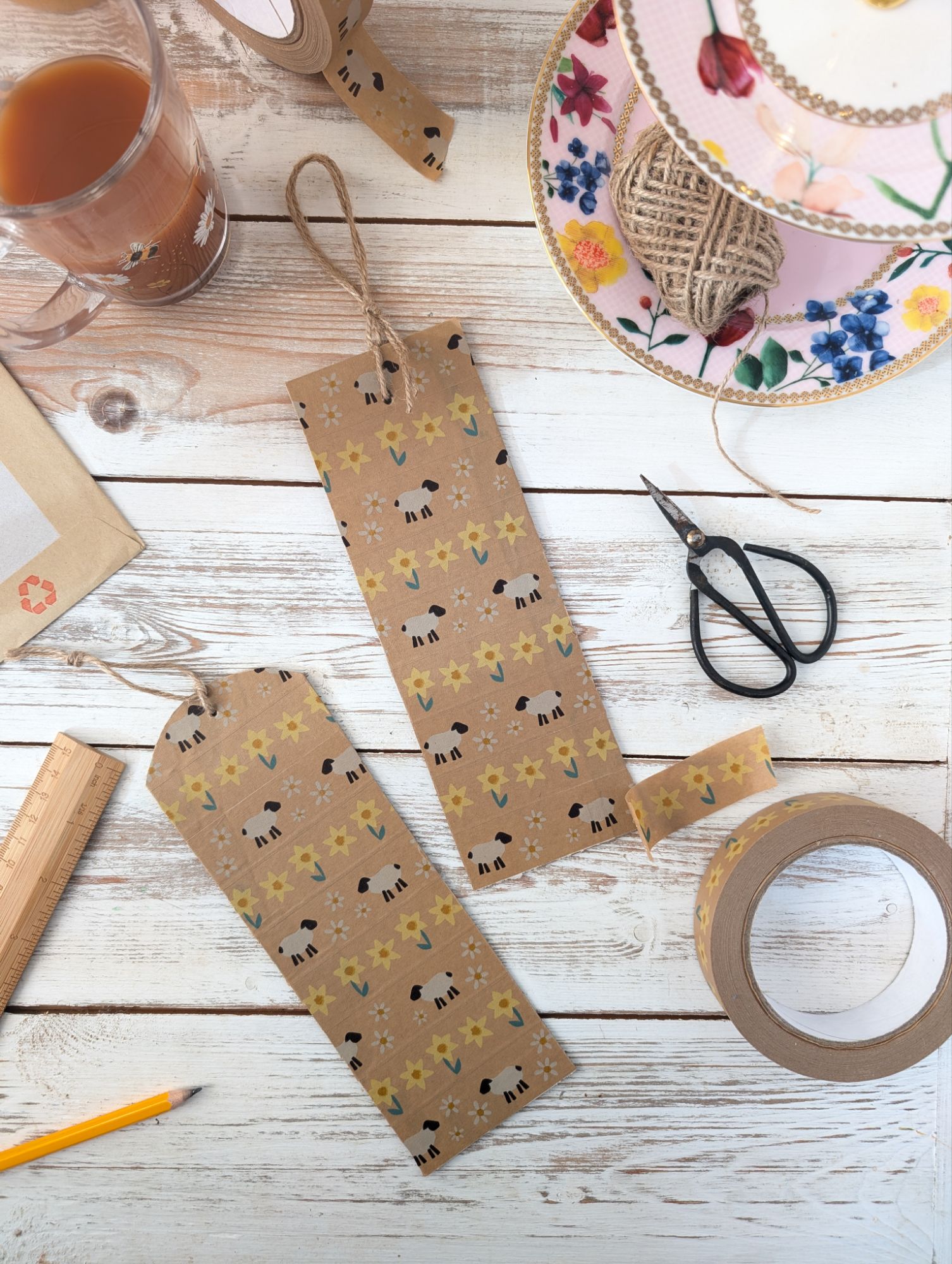 - String or Ribbon – I used twine, as it complemented the natural tones of the kraft paper tape.